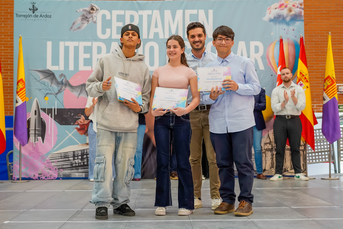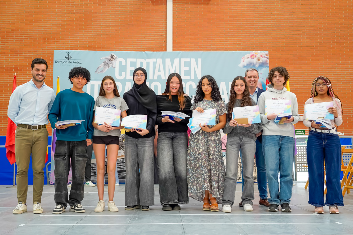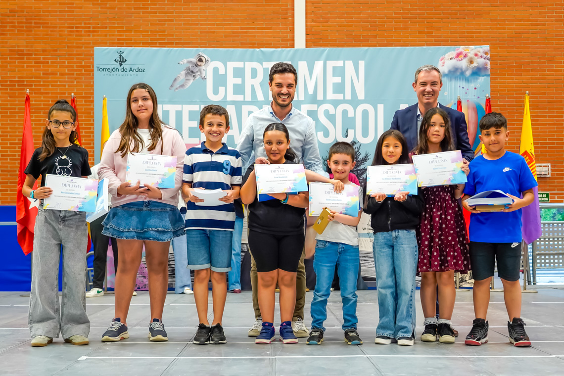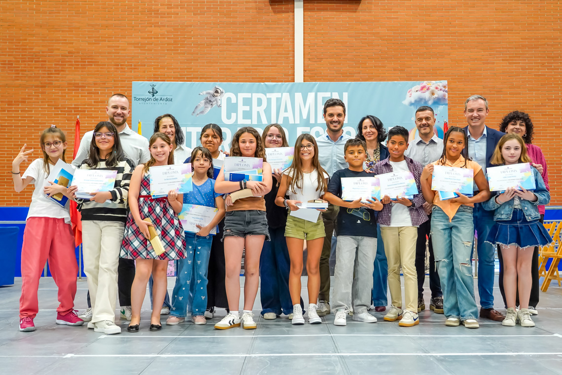 Un total de 6.073 alumnos de 25 centros educativos de la ciudad han participado en la XXVI edición del Certamen Literario Escolar. De todos los textos escritos, se han elegido los 285 mejores trabajos, 140 poesías y 145 relatos cortos, que son los que forman parte de los dos libros que la Concejalía de Educación del Ayuntamiento de Torrejón de Ardoz ha editado con motivo del certamen. Asimismo, se premió a los 12 centros educativos que registraron un 100% de participación entre su alumnado.