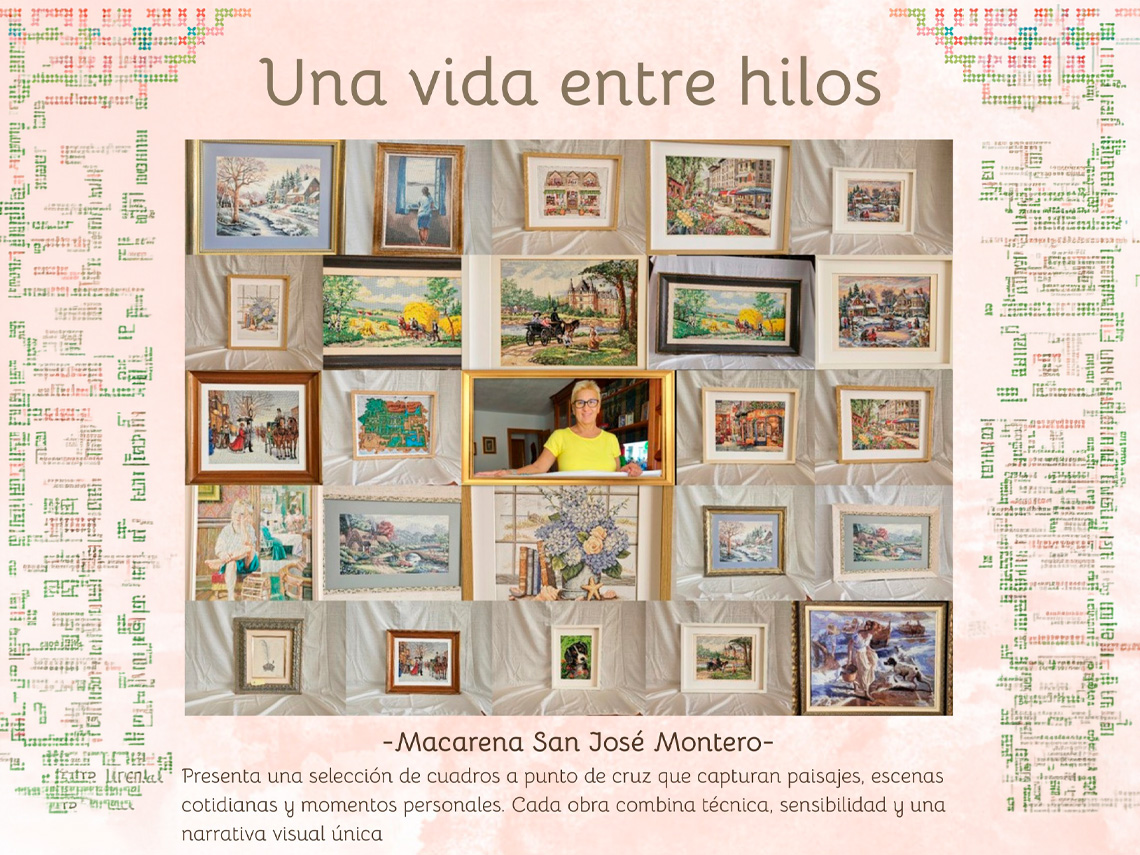 • También, en la Casa de la Cultura, pero en su sala de exposiciones, se podrá contemplar desde mañana 16 de abril y hasta el 2 de mayo, la exposición de pintura “Retrospectiva”, de Esperanza Salinero, que está en horario de lunes a sábados de 11:00 a 14:00 y de 18:00 a 21:00 horas y domingos de 11:00 a 14:00 horas, mientras que, en el vestíbulo de la primera planta hasta el 22 de abril, estará la muestra “Una vida entre hilos”, de Macarena San José Montero, en horario de lunes a viernes de 9:00 a 21:00 horas y sábados de 10:00 a 14:00 horas